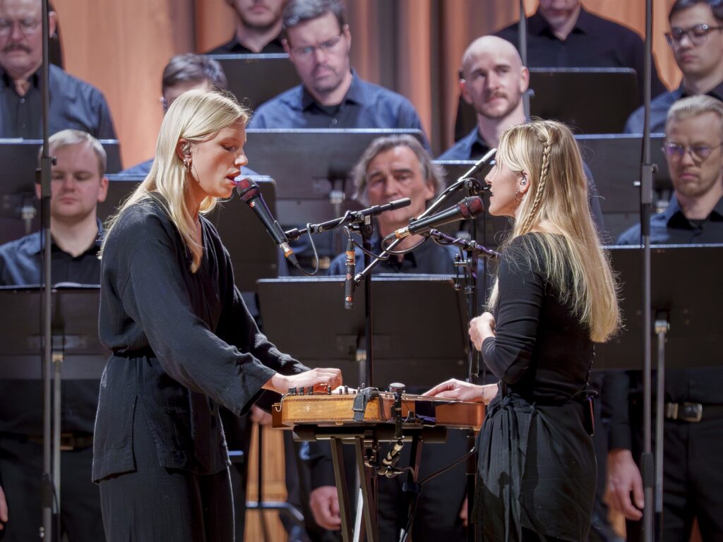 Põnevil ja sumisev täissaal jäi vaikseks hetk enne rahvusmeeskoori lavale astumist. Koori järel tulid lavale dirigent Mikk Üleoja ning Duo Ruudu liikmed Ann-Lisett Rebane ja Katariina Kivi. Intiimsus, mille Duo Ruut üht pilli vastastikku mängima asudes kontserdisaali kohe toovad, on tähelepanuväärne. Köidab ka duo siirus ja ehedus, mis on maailmalavadel ilmselt ka üks nende edu võti.